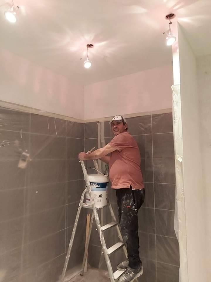- Travaux de maçonnerie : ragréage du sol et lissage des murs, création d'une cloison en carreau de plâtre