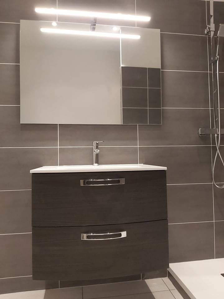 - Pose des éléments sanitaires de salle de bain : meuble, vasque, miroir, robinetteries