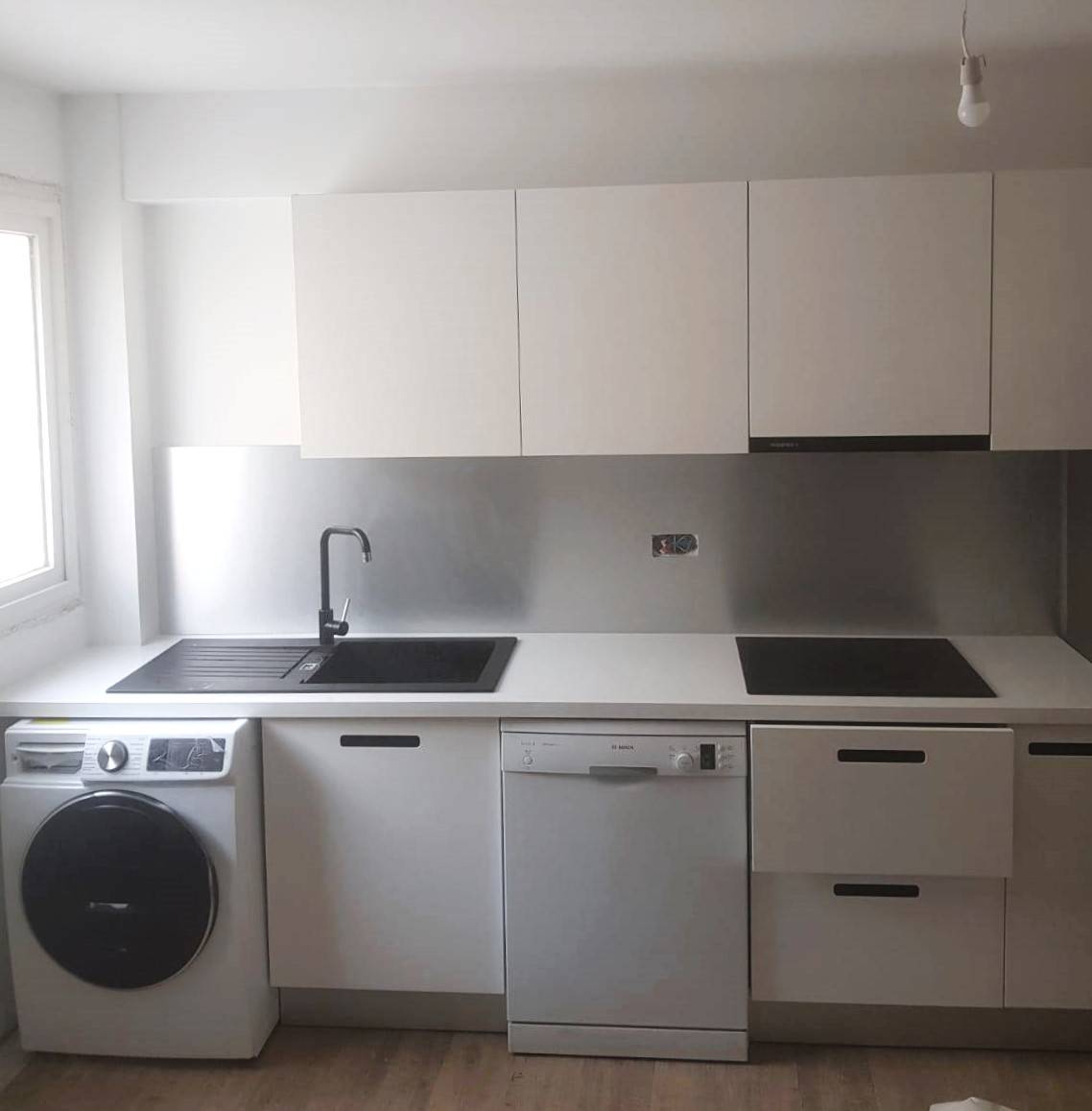 - Fourniture et pose de plan de travail stratifié et crédence inox