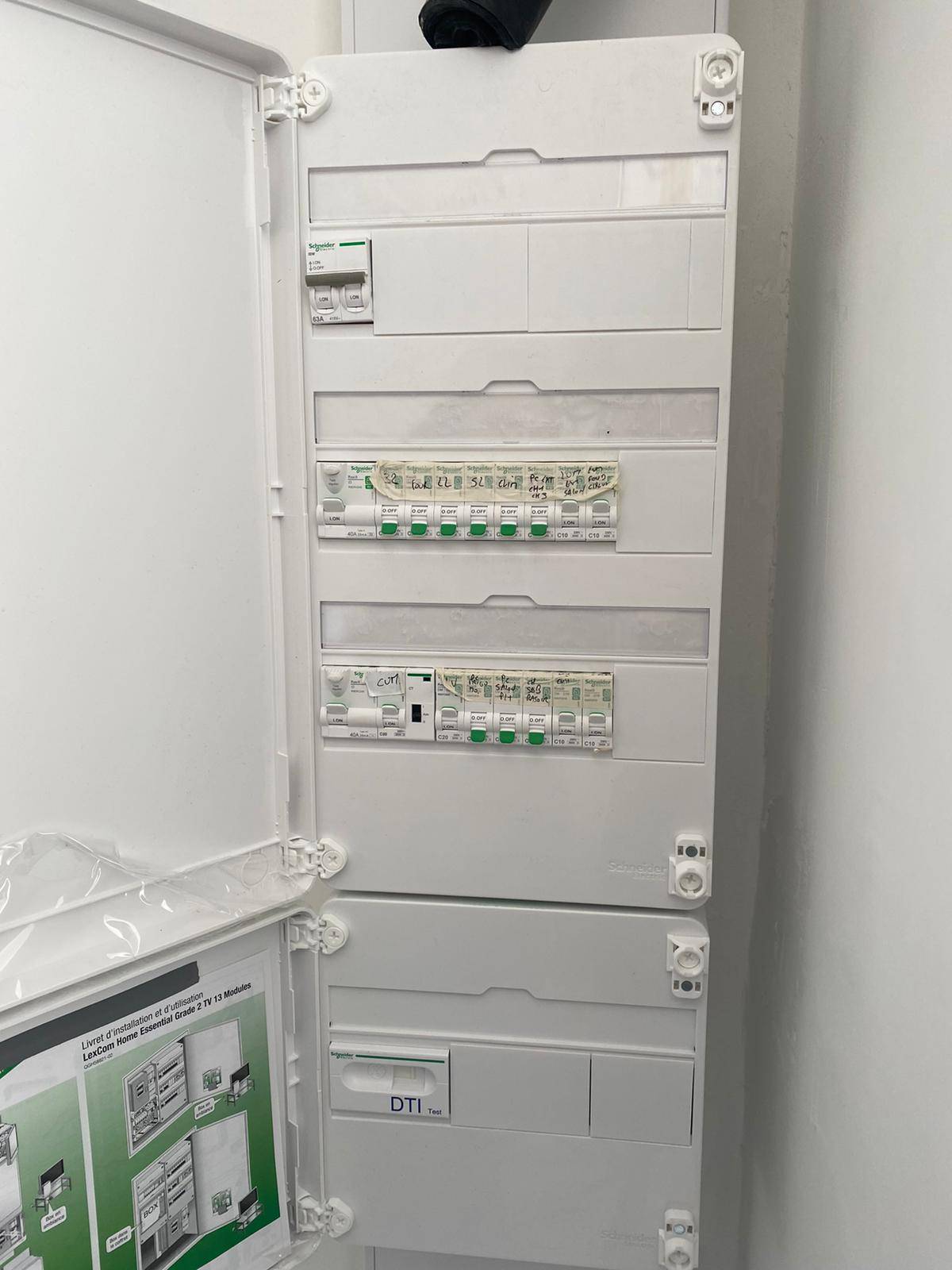 - Travaux de mise aux normes de toute l’électricité, de l’appartement et du tableau électrique.