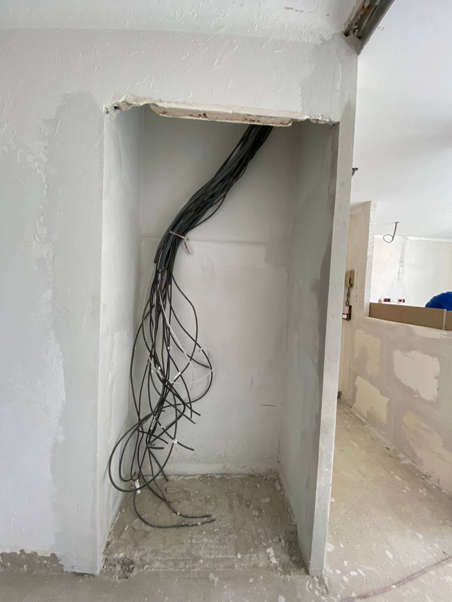 - Doublage du mur salon coté baie vitrée de 5 cm et du mur emplacement de la future cuisine.