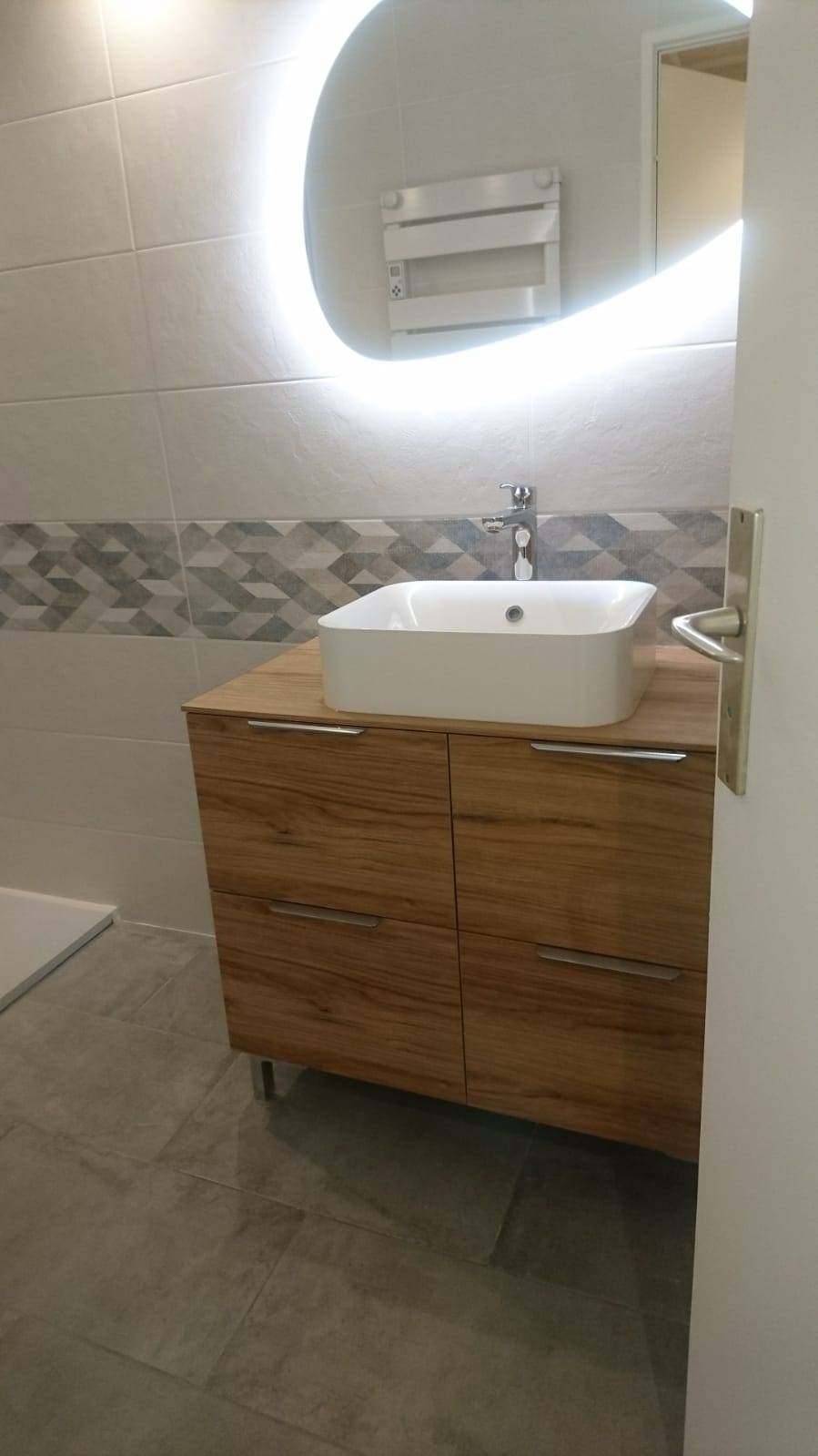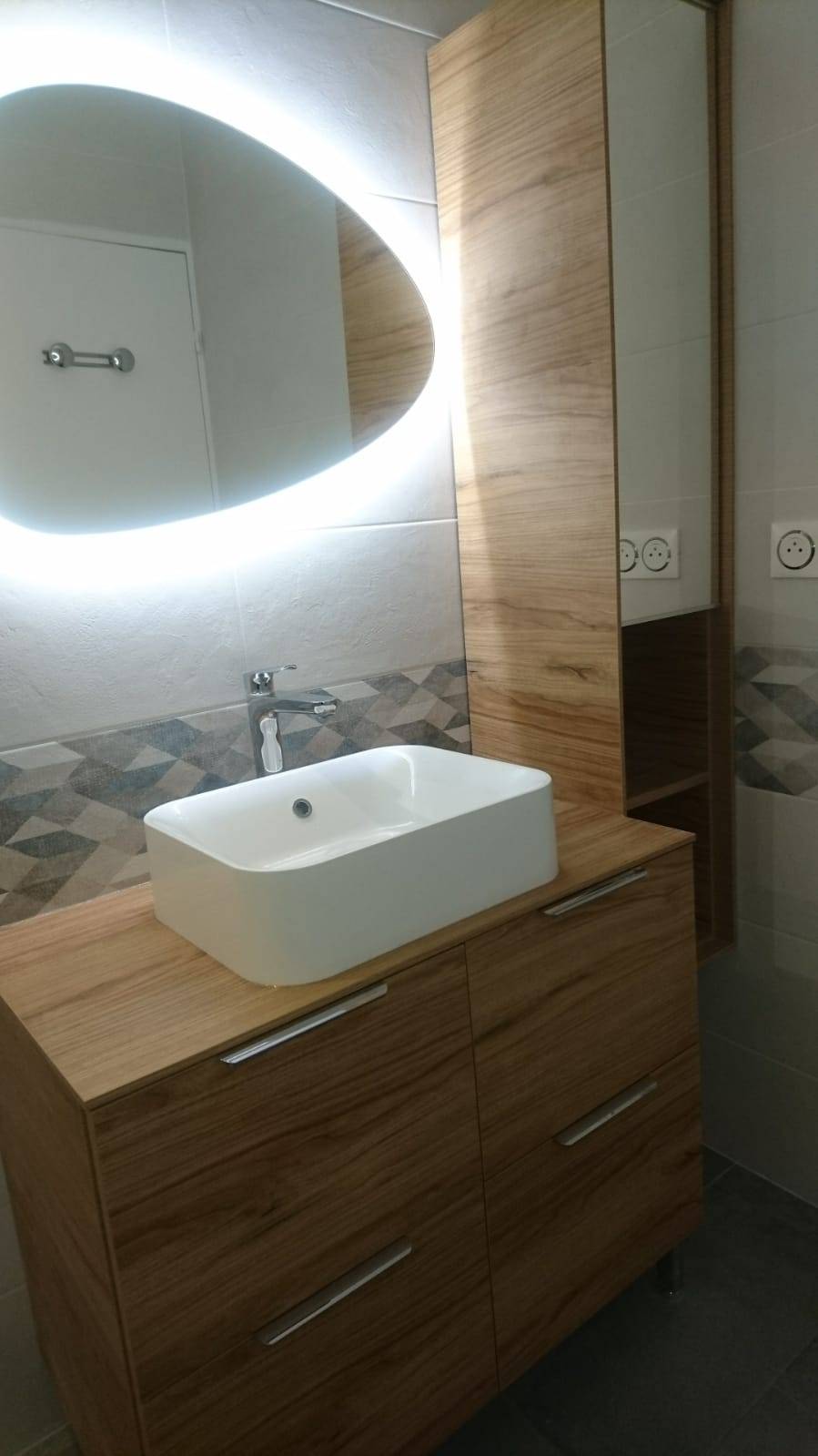 - Pose des meubles de salle de bain : meuble vasque, miroir, colonne.