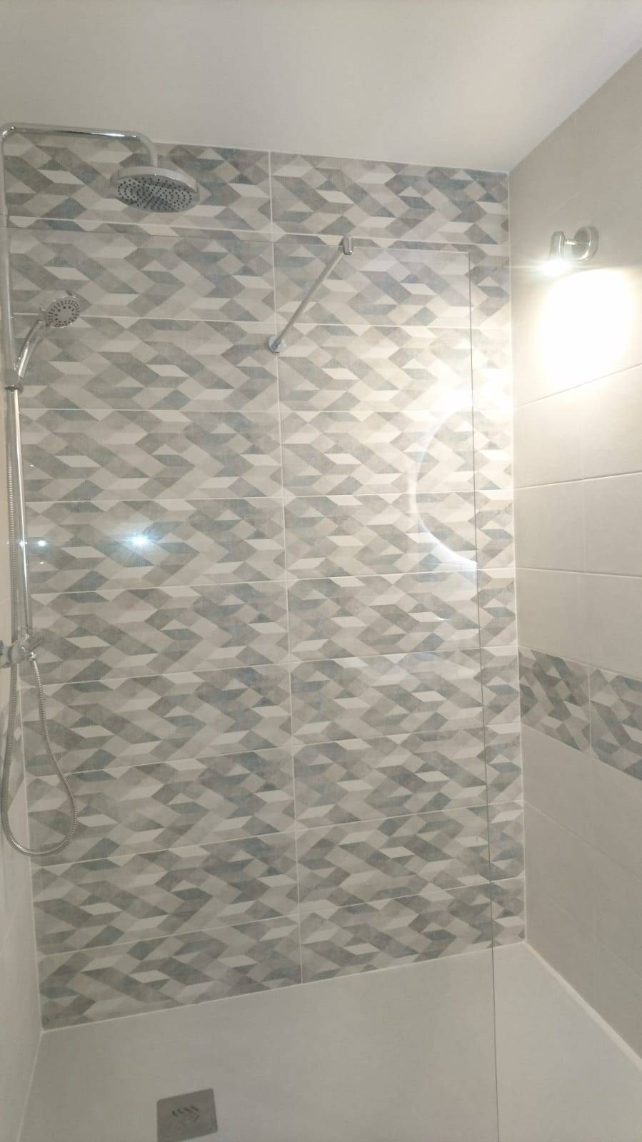 La mise en œuvre du chantier GRANICRUZ avec la collaboration experte de nos techniciens a permis de créer ce nouvel espace : une salle de bain (douche) entièrement personnalisée et moderne avec une décoration en mosaïque grise.