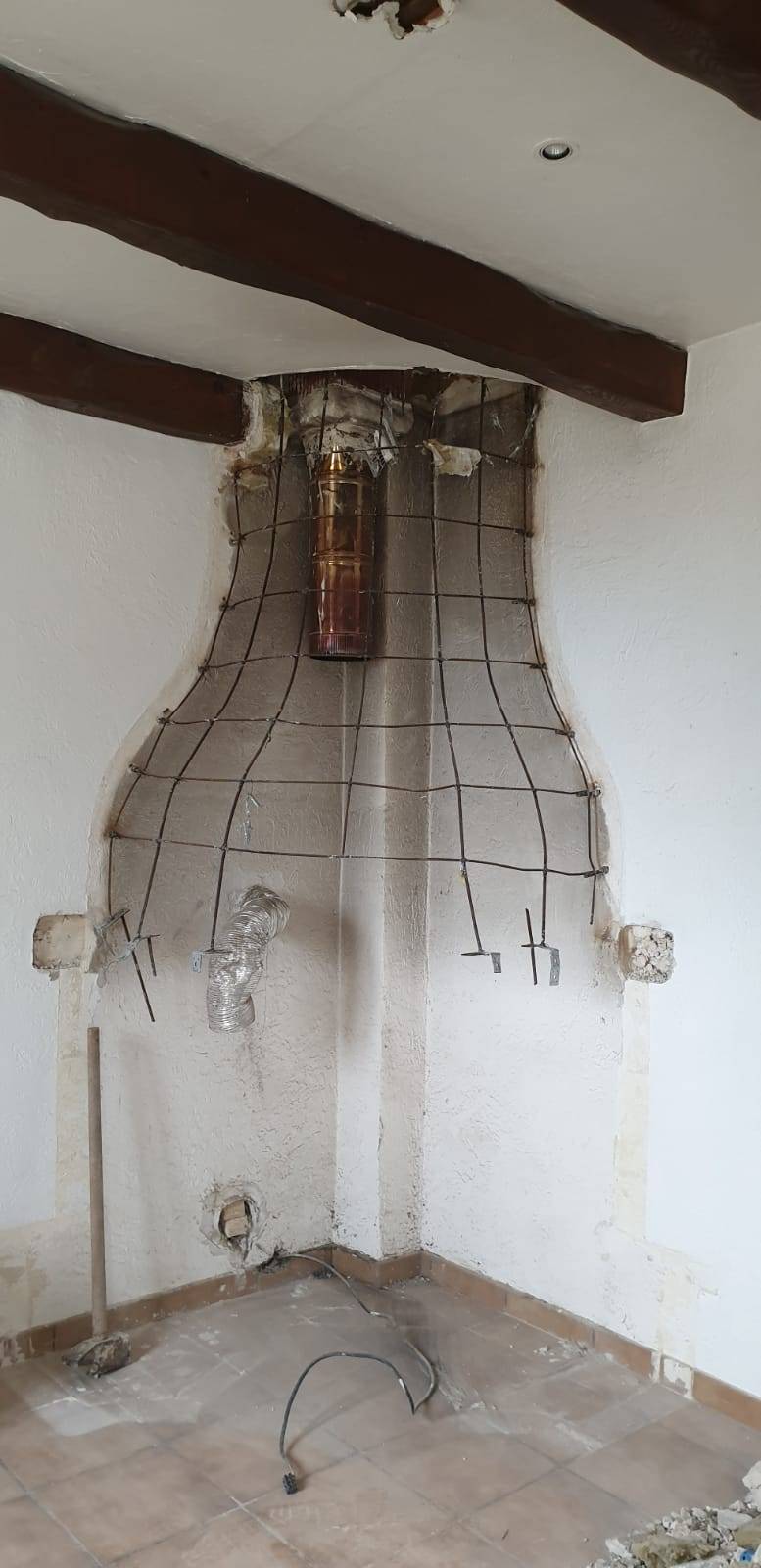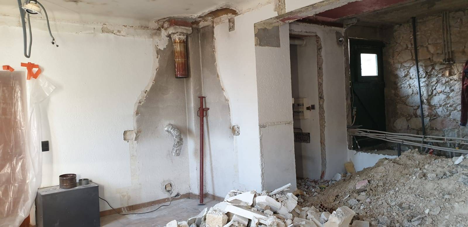 - Dépose de la cuisine existante et du mur mitoyen entre cuisine et la cave.