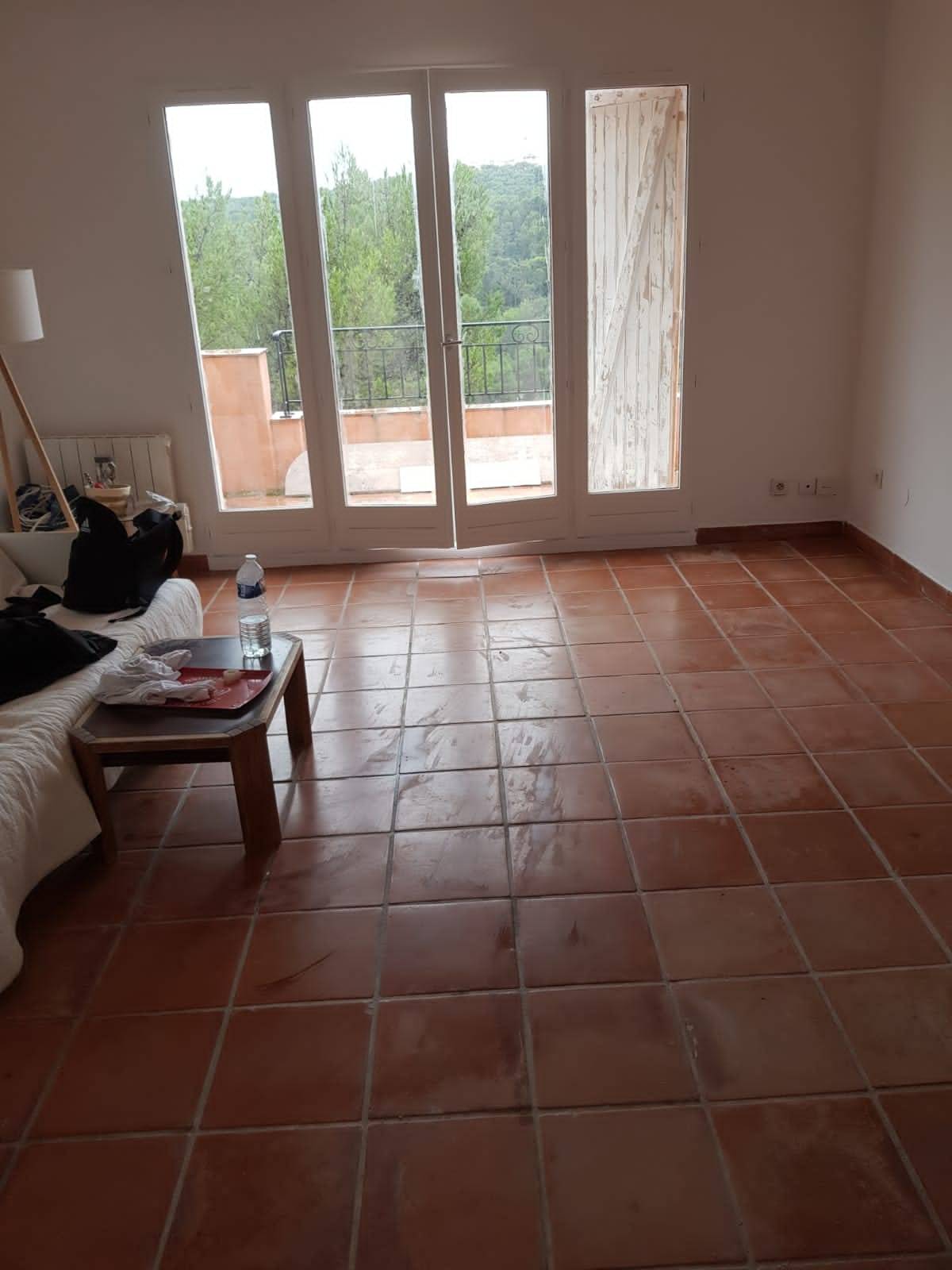 - Peinture des mus et plafond de la cuisine et du salon (deux sous-couches)