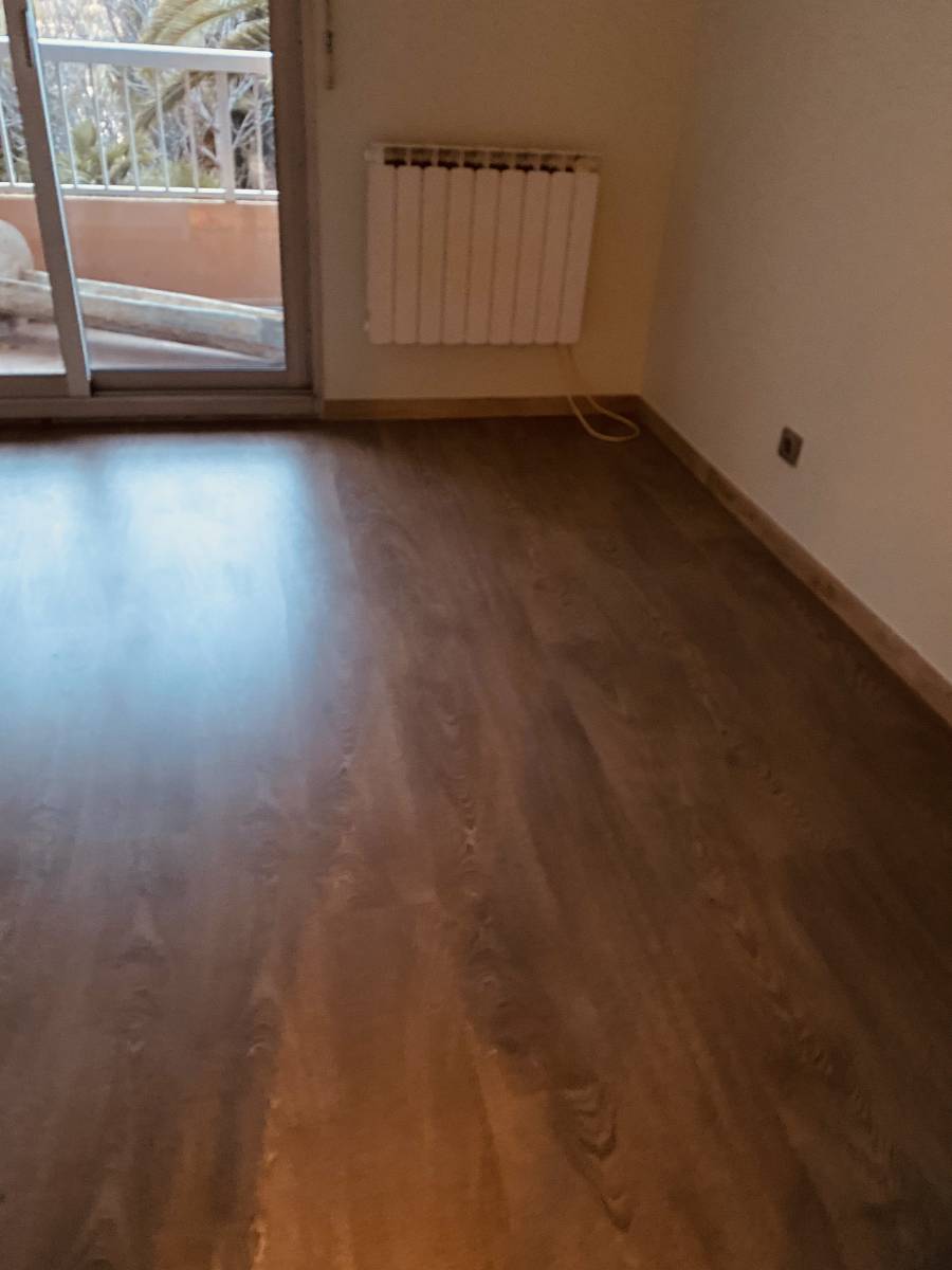 - Fourniture et pose du parquet stratifié de 7mm, en frêne argenté avec plinthes