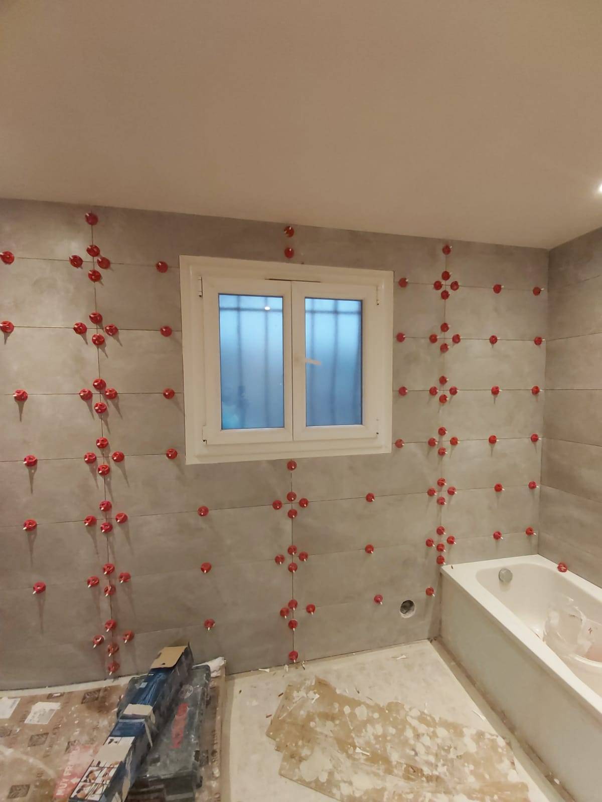 - Rattrapage des murs en plâtre après dépose de carrelage et frises