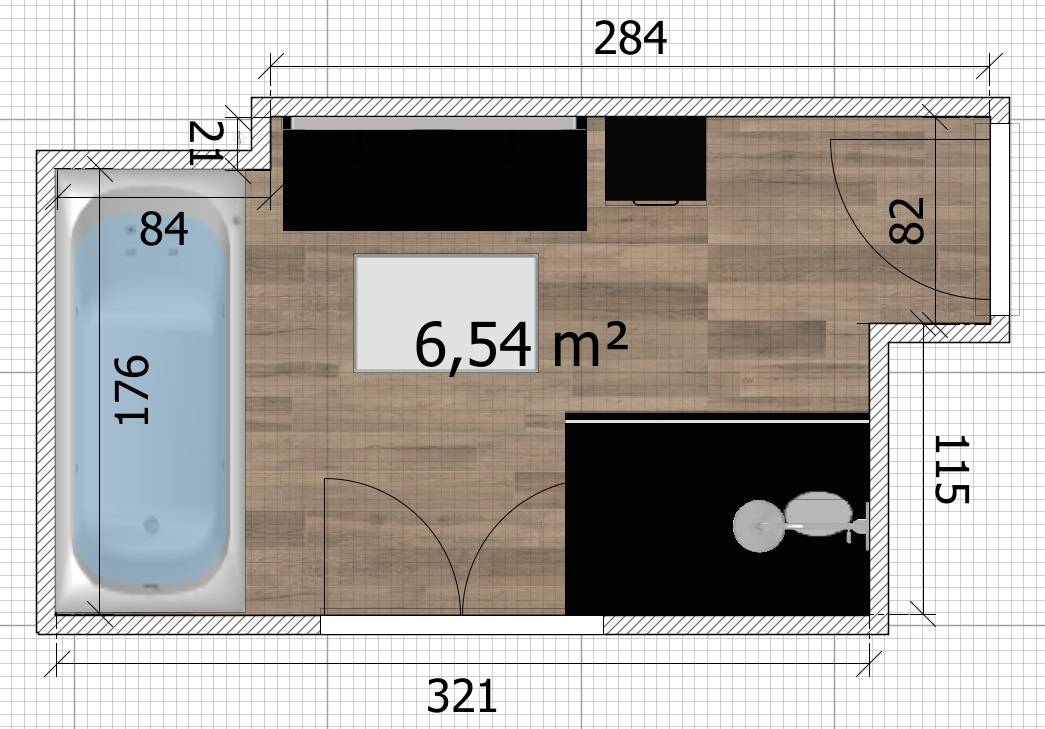 - Création d'un coffrage autour de la nourrice de plomberie présente sous le meuble vasque, avec trappe de visite pour accès au robinet d'arrêt