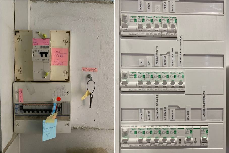 - Fourniture et pose d'un tableau électrique 3 rangées Schneider