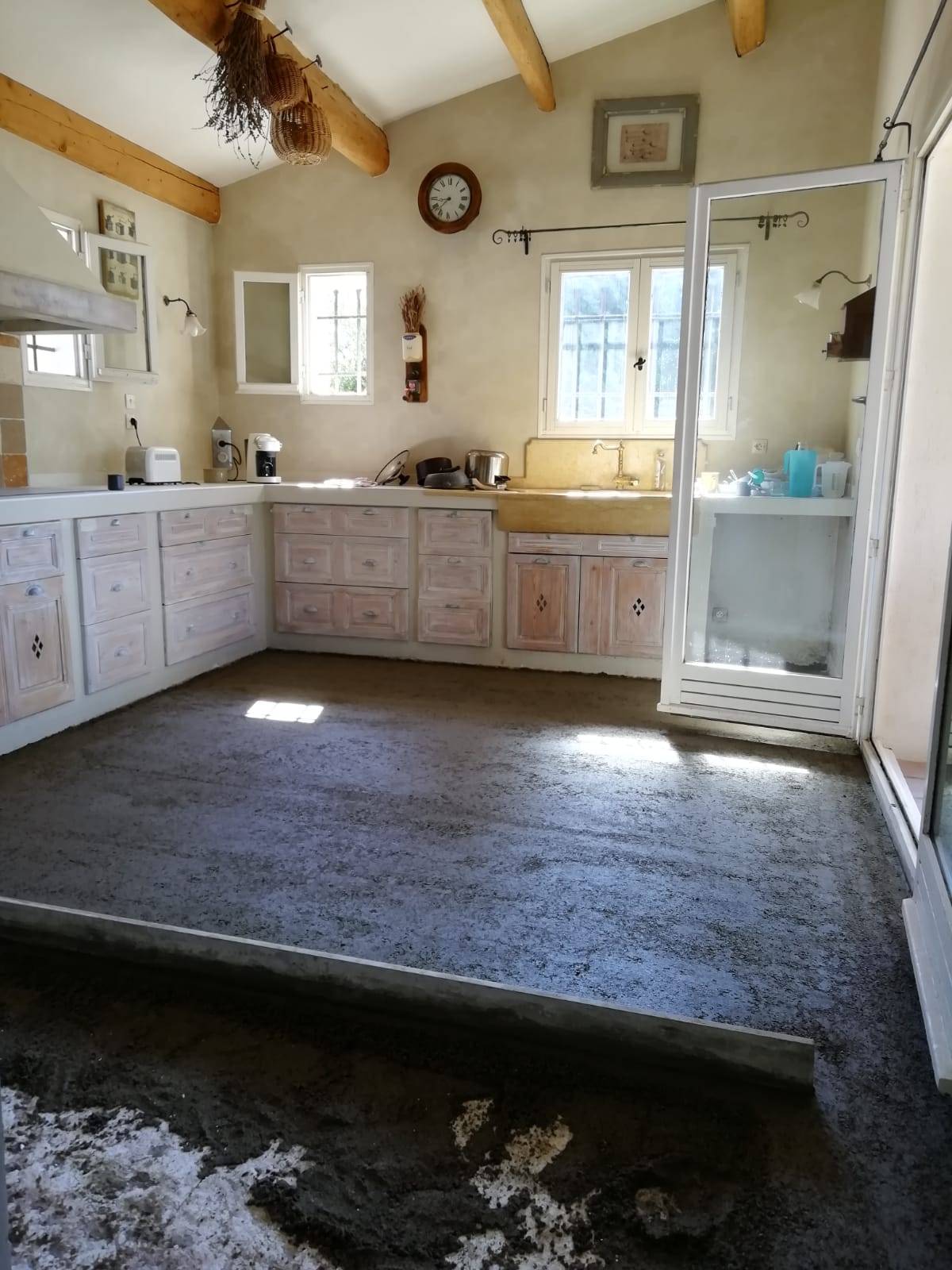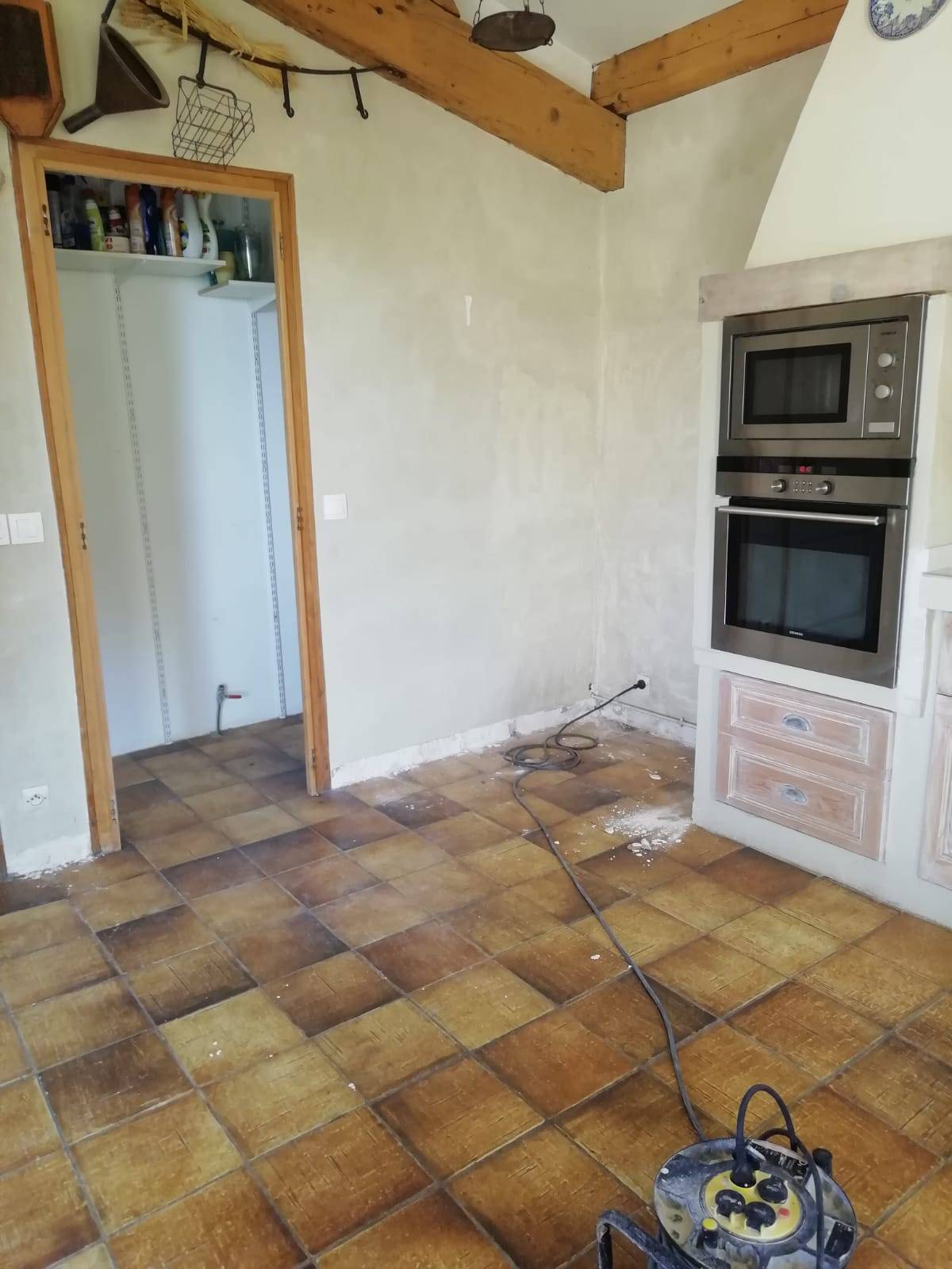 - Dépose de 17m² de l’ancien carrelage au sol de la cuisine