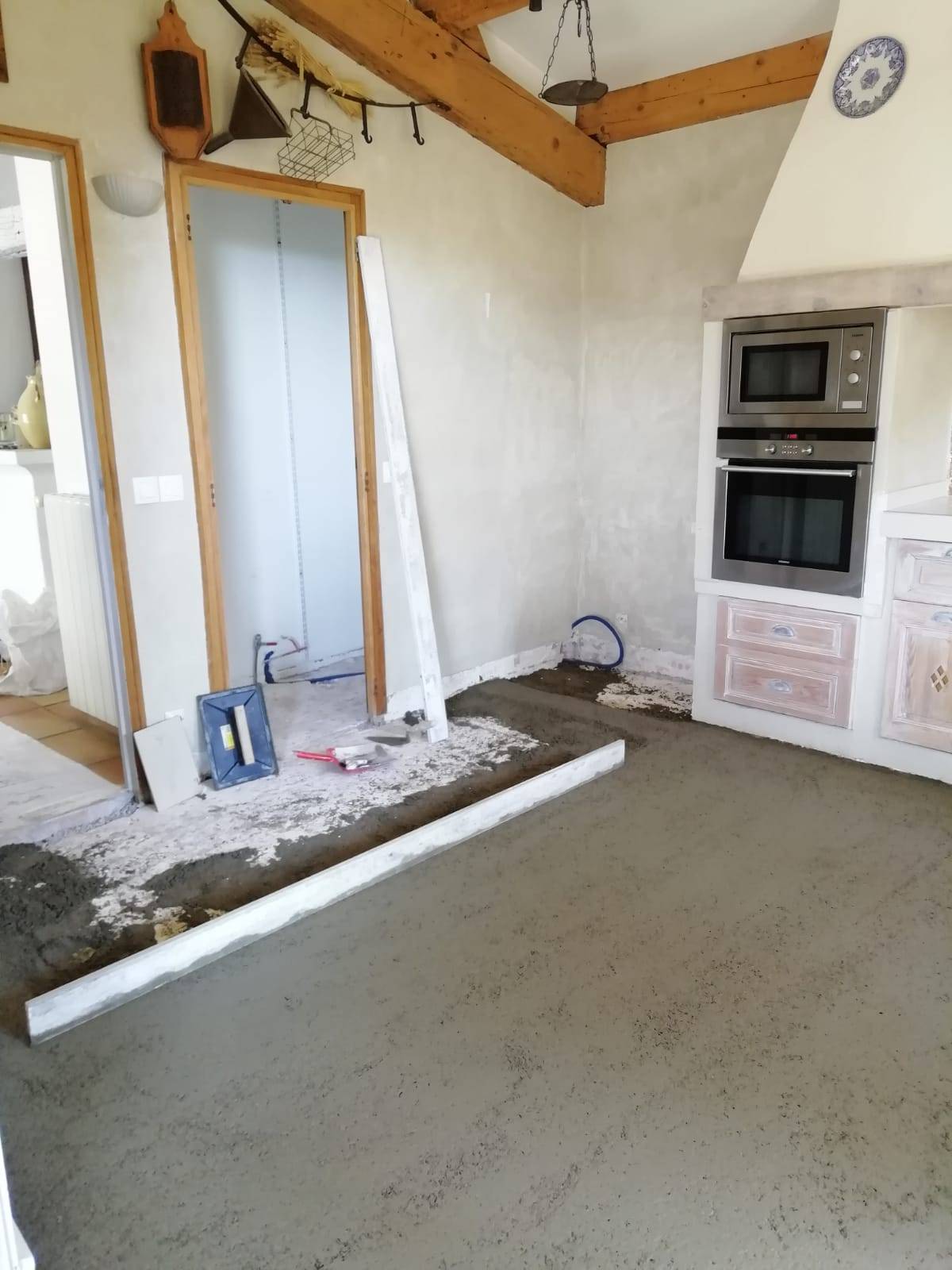 - Création d’une chape en ciment mortier d’une épaisseur de 7cm sur 17m²