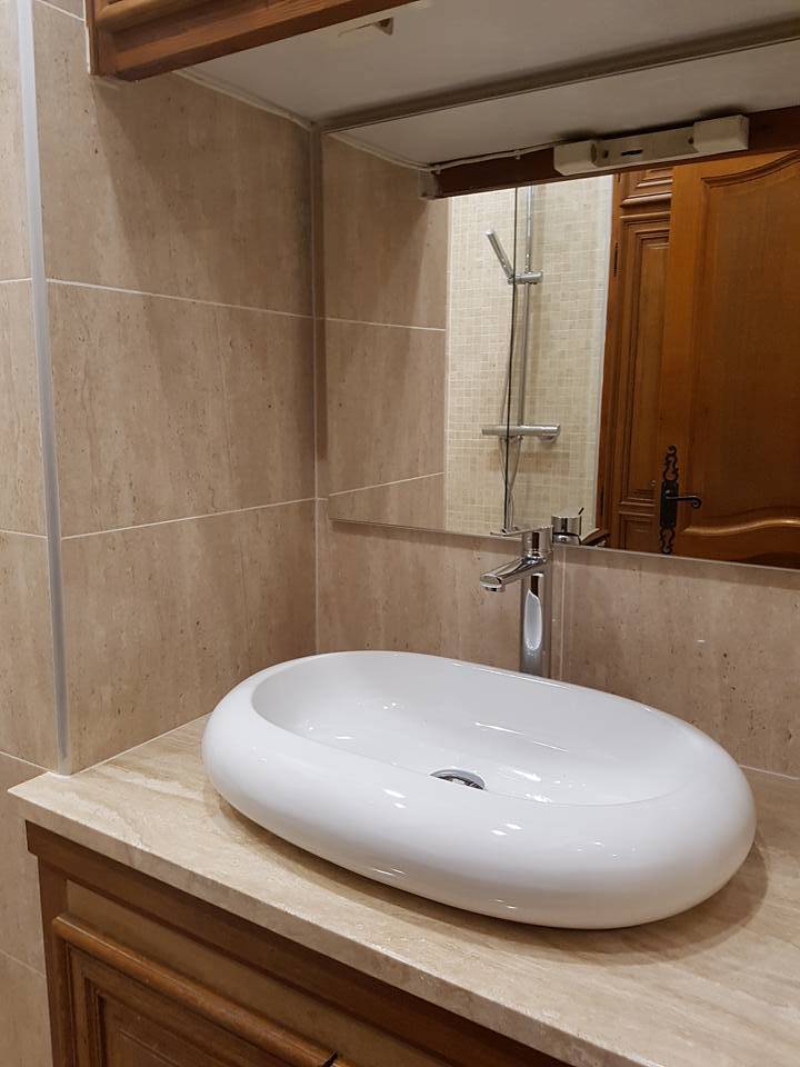 Les caractéristiques techniques de ce projet de rénovation sont impressionnantes : la cuisine a été conçue en thermo laminé, avec une fourniture sur mesure de tous les électroménagers. La salle de bain a été équipée de carrelage REVIGRES Foreste Chery et de faïence REVIGRES Travertino brillant. Les meubles de la salle de bain ont également été fournis sur mesure, avec un lavabo et un miroir Artic Xtreme de 80x60.